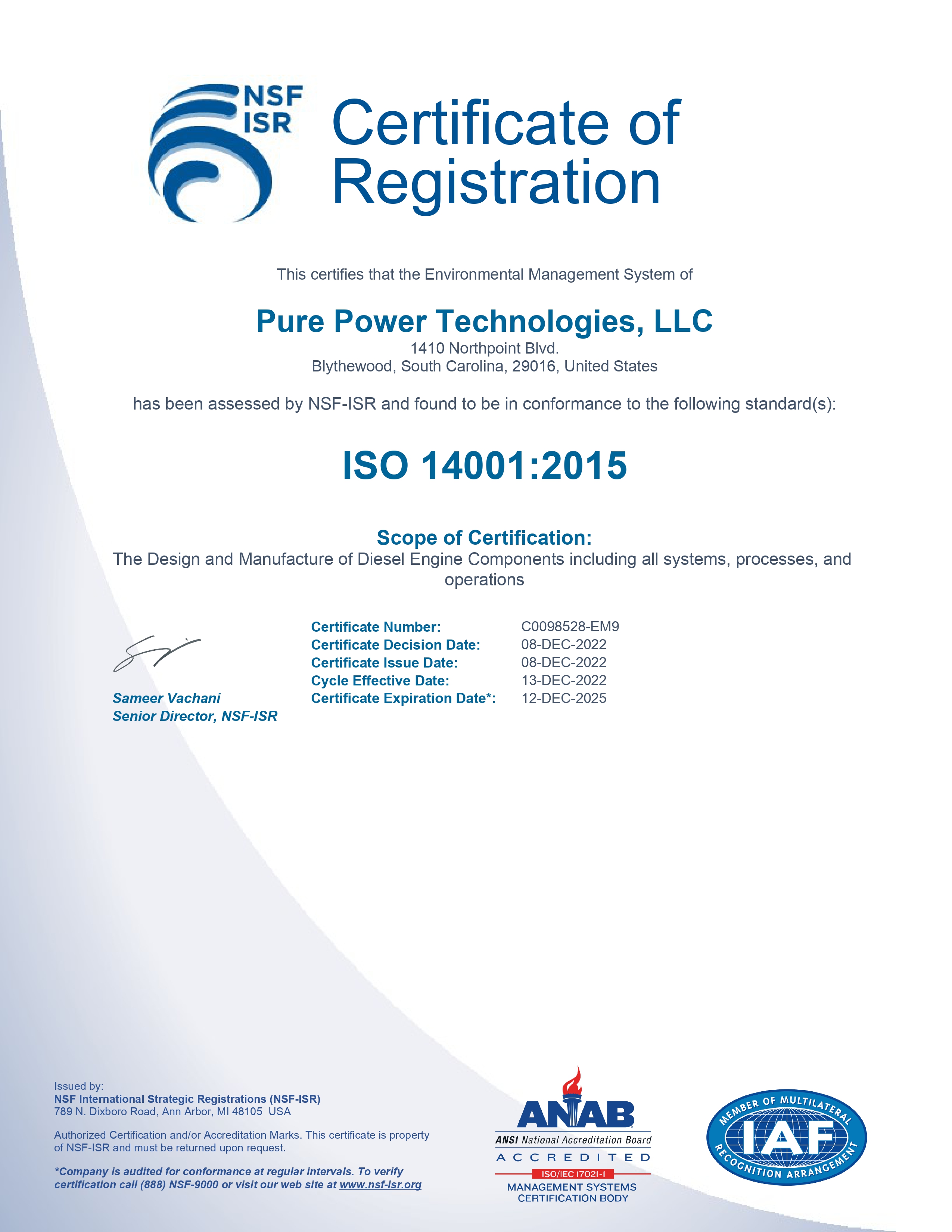- схвалено більшістю виробників, включаючи GM, Ford, Deere & Navistar.
