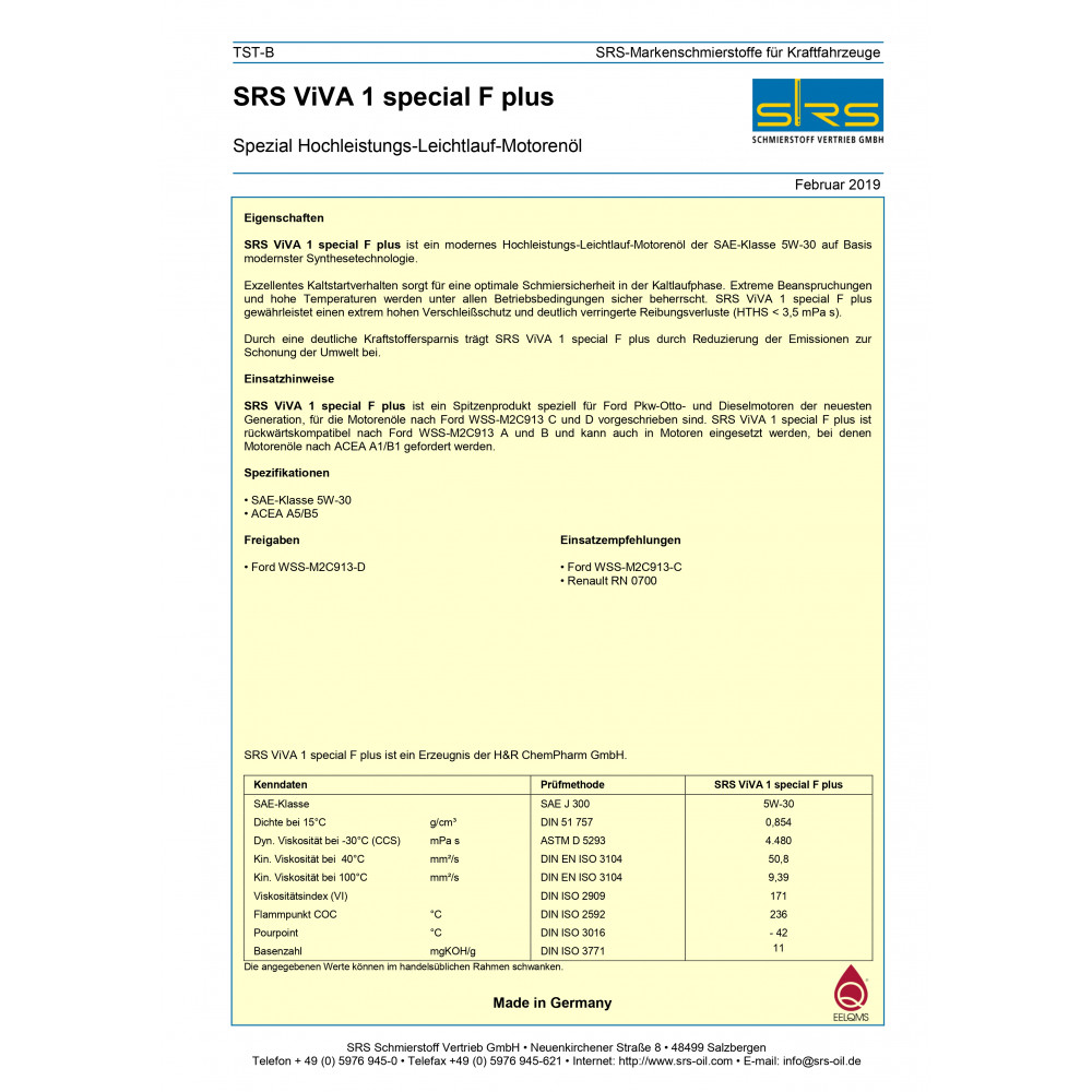 Паспорт безпеки Special F PLUS 5W30.pdf - Інформація про продукт